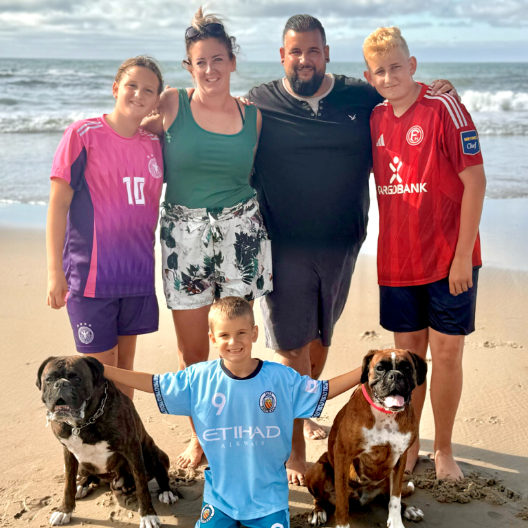 Da wir seit 2010 Eltern sind und mittlerweile drei Kinder haben, wurde der Wunsch nach einem vierbeinigen Begleiter im Haus wieder laut. Bei der Wahl der Rasse gab es für uns keine zwei Meinungen: Der Boxer ist für uns schlichtweg der beste Familienhund der Welt. Er vereint die nötige Gelassenheit mit einer unerschütterlichen Treue zu seinen Menschen. So zog im Jahr 2020 unser Boxer Stitch ein.